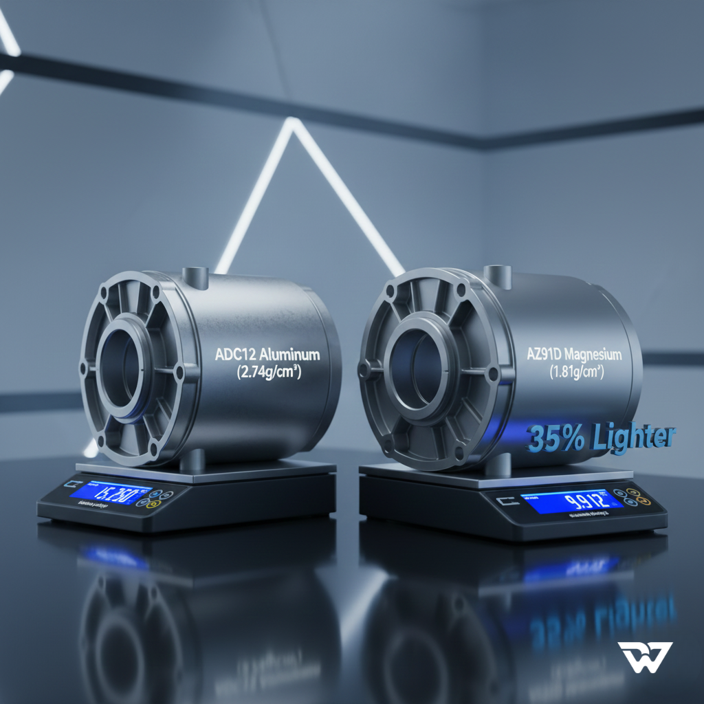 ADC12 aluminum alloy has long dominated Asian die-casting markets, earning its position as the default material for motor housings and structural enclosures through its reliable castability and cost efficiency. But as weight reduction targets push toward their limits, AZ91D magnesium alloy — with a density of just 1.74–1.81 g/cm³, approximately 35% lighter than ADC12 — is now appearing on more engineering shortlists.